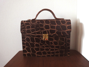 クロコダイルの型押しを施した、しっかりとした牛革バッグ。B5サイズよりやや小さめのかっちりとしたクラシカルなデザインで、男女問わずお使いいただけます。内側まで贅沢に型押し素材で仕上げたこだわりのバッグです。